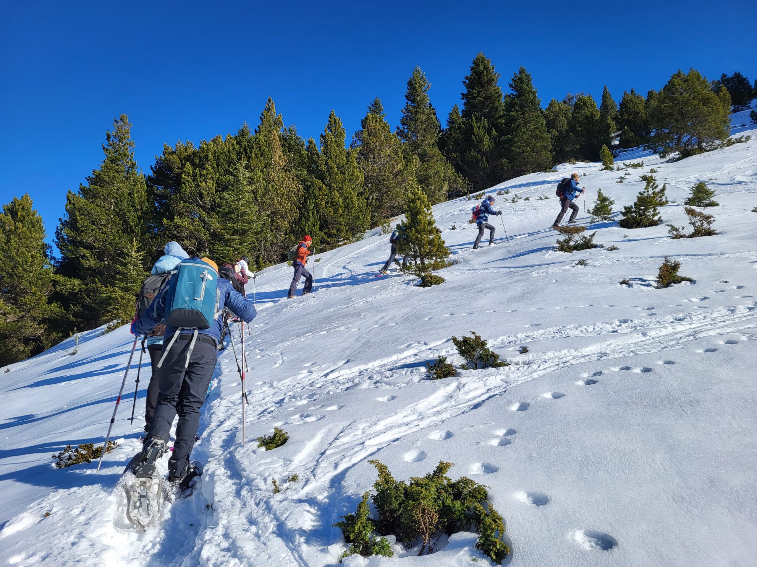 Au programme : une randonnée douce et accessible, parfaite pour savourer chaque instant sans se presser. Pas à pas, nous avançons à travers une vallée féerique, entourée de forêts enneigées et de panoramas grandioses. L’air pur et les sommets qui nous entourent, culminant à près de 3000 mètres, nous offrent un spectacle inoubliable.