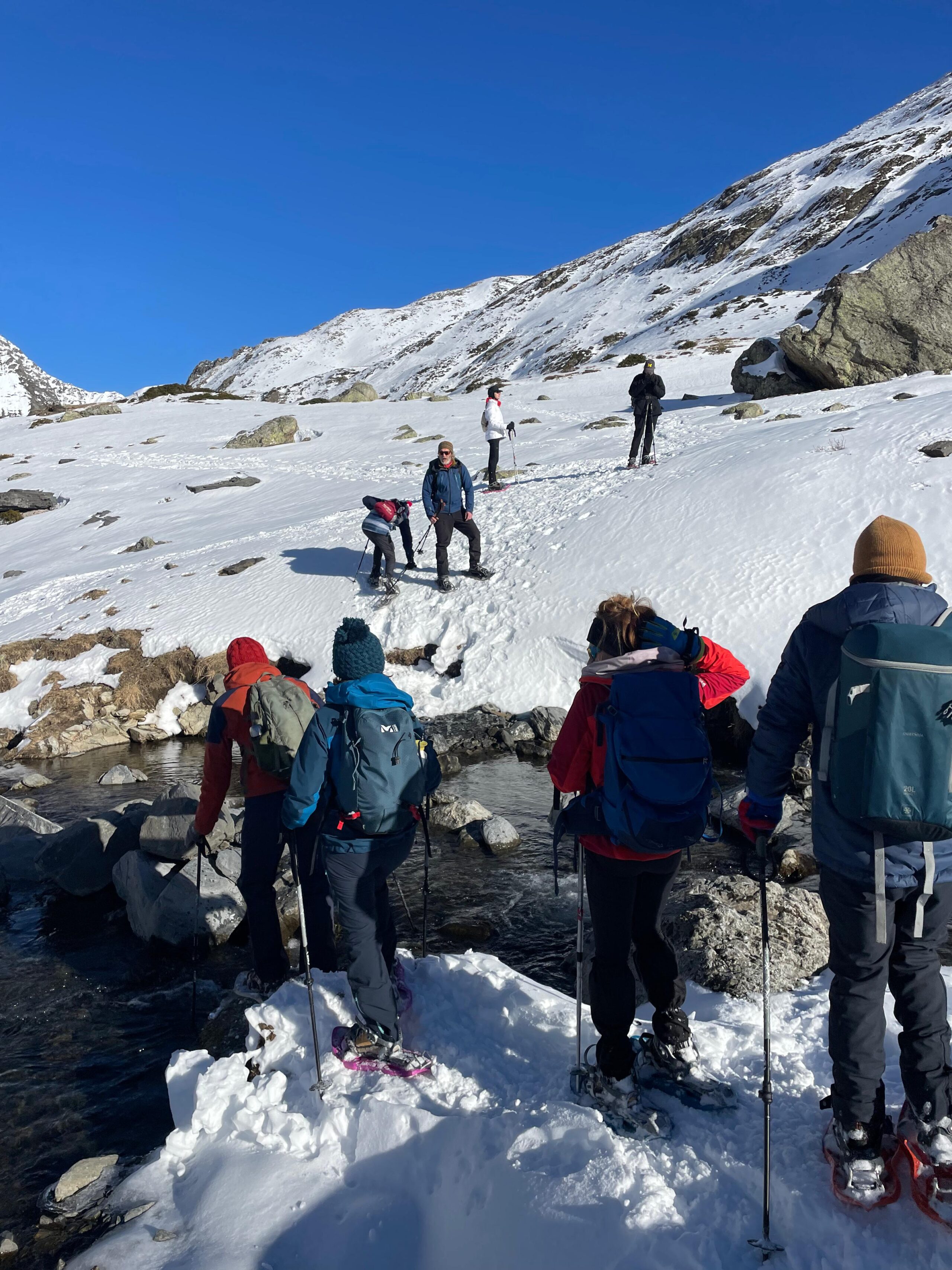 Rendez-vous à 9h30 à la gare de Lannemezan. On rencontre notre Captain et le groupe, et c’est parti pour finir l’année en beauté avec un séjour magique en plein cœur des Pyrénées ! On enfile nos raquettes (en fonction de l’enneigement, ou crampons) et on se laisse guider à travers les paysages d’un parc national préservé saupoudrés de neige par l’hiver.