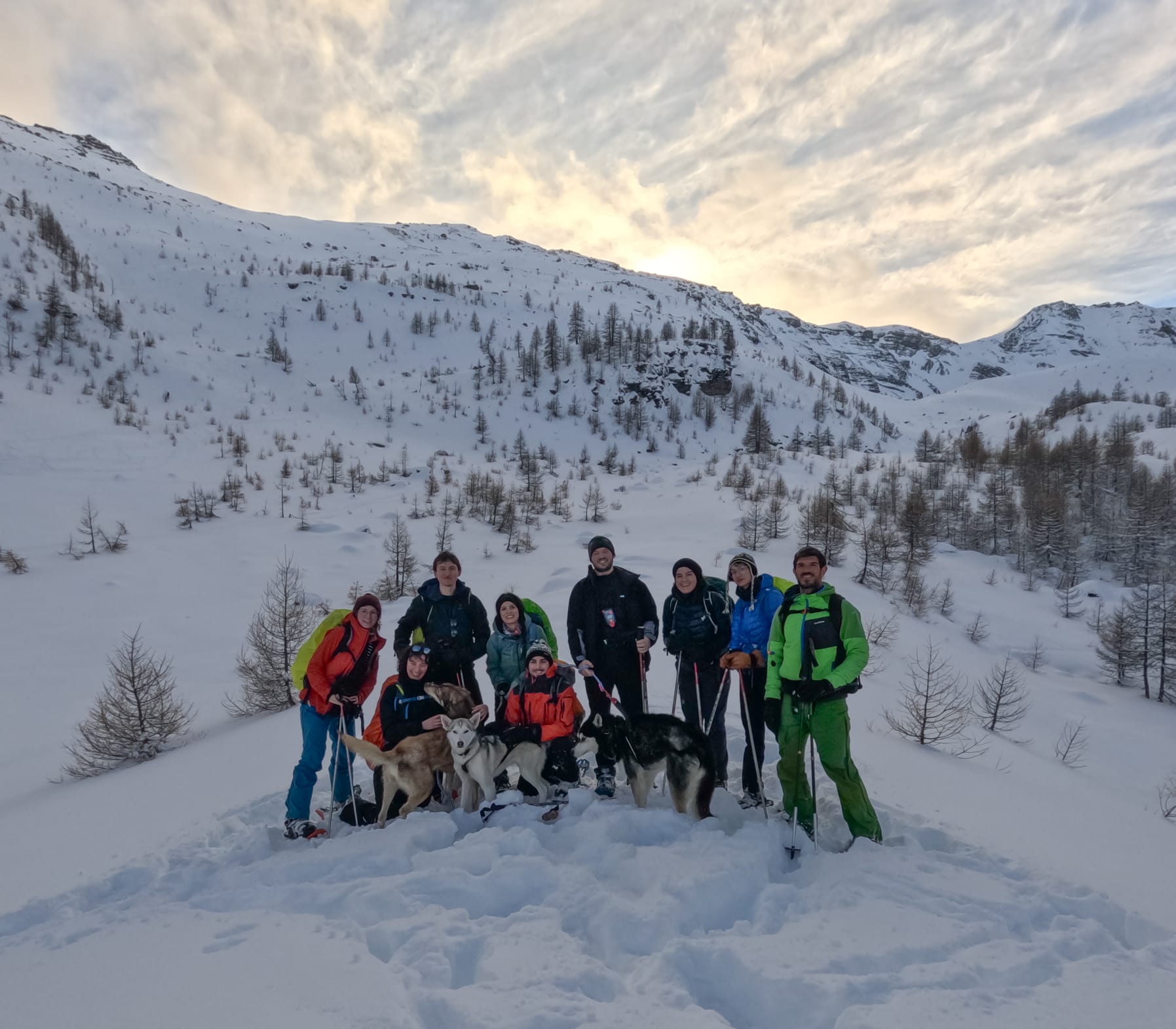 Nous prenons le temps de nous détendre en fin de journée : balade dans le village d’Abries, chocolat chaud à l’italienne ou sieste bien méritée. Le soir, on se retrouve au gîte autour d’un bon dîner réconfortant, suivi de la projection d’un film d’expédition réalisé par Robin et Élise — et qui sait, peut-être qu’on reconnaîtra le chien avec qui on a partagé la piste.