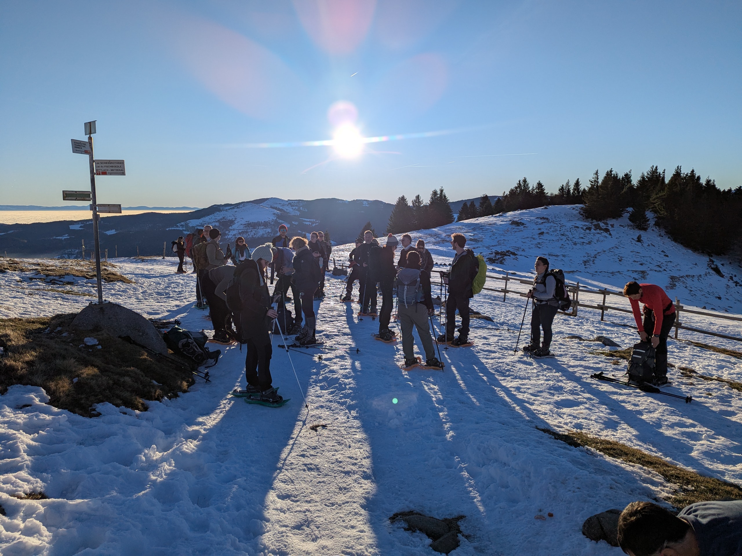 Nous avons rendez-vous à 12h devant la gare de Metzeral avec notre Captain Martin et le reste de la troupe ! Dès la sortie de la gare, nous faisons un petit briefing, puis nous partons en randonnée ! Nous faisons un pique-nique en pleine nature, où chacun apporte son repas. Nous reprenons notre marche et nous montons petit à petit en altitude, en suivant la vallée de la Wormsa et ses deux lacs, afin d’arriver avant la nuit.