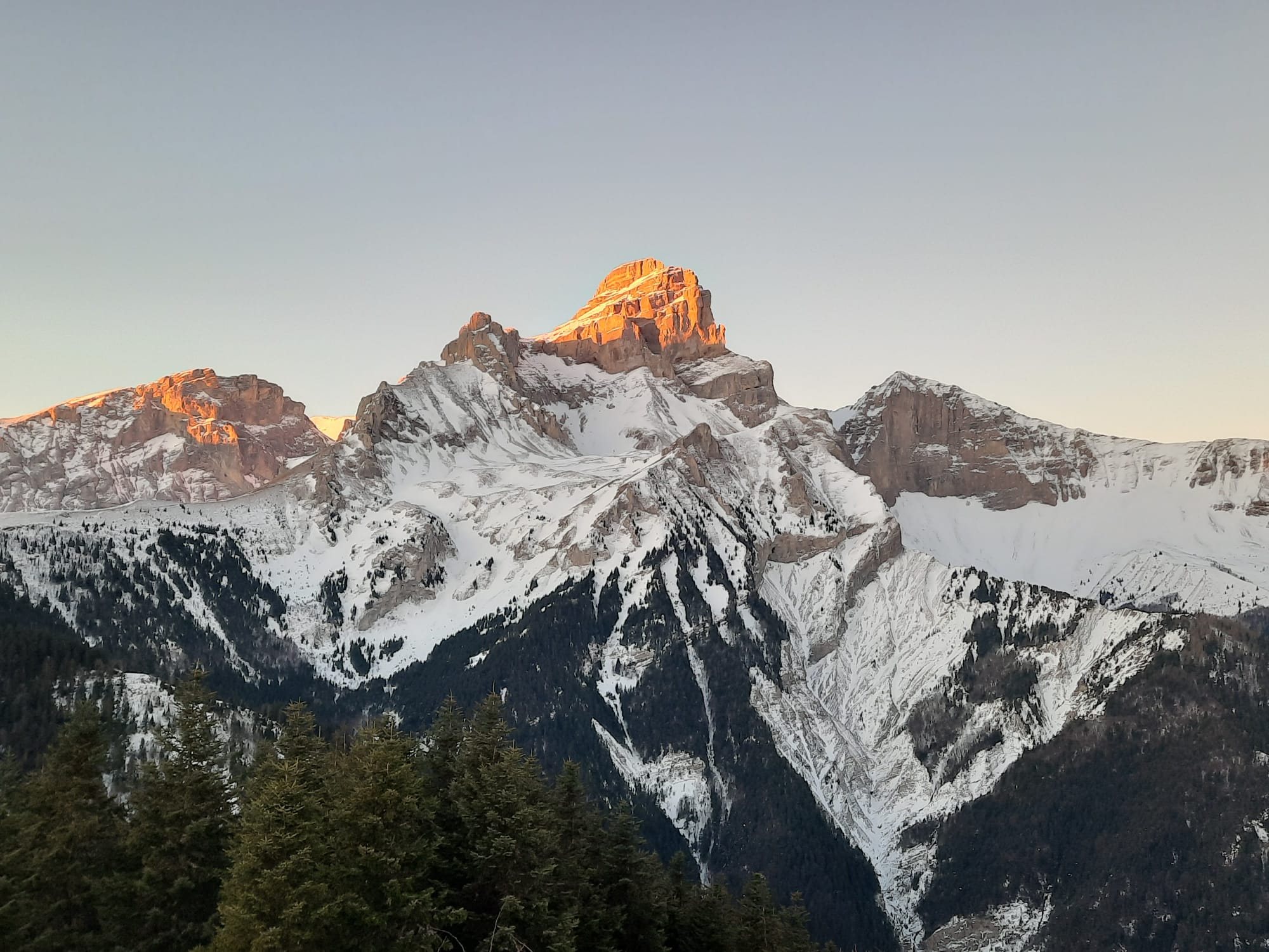 La journée commence par une magnifique randonnée avec pour objectif le Bénitier de l’Obiou, culminant à 2 036 m d’altitude. Ce véritable belvédère offre une vue panoramique époustouflante sur les Écrins, les Aiguilles d’Arve et les Grandes Rousses, avec des étendues de neige à perte de vue. Après cette belle ascension, nous retournons au refuge relativement tôt pour préparer notre soirée du réveillon en pleine nature.