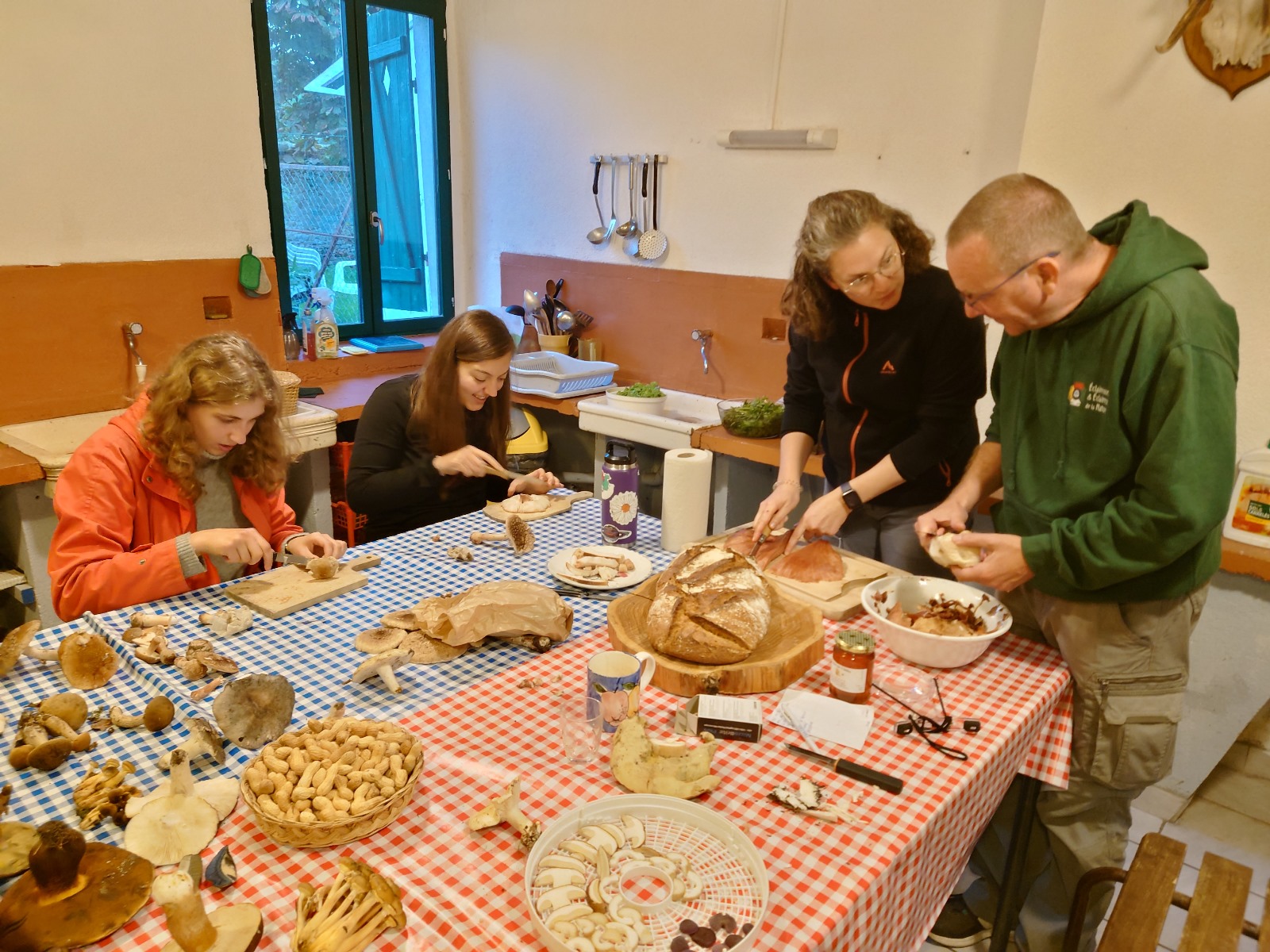 De retour au gîte, c’est le moment de découvrir les secrets culinaires des champignons : les différentes façons de les préparer en fonction de leur nature, leurs diverses cuissons, et bien sûr, les recettes délicieuses qui en découlent. Un festin gastronomique conclura cette journée mémorable, partagée entre apprentissage, nature et gourmandise.
